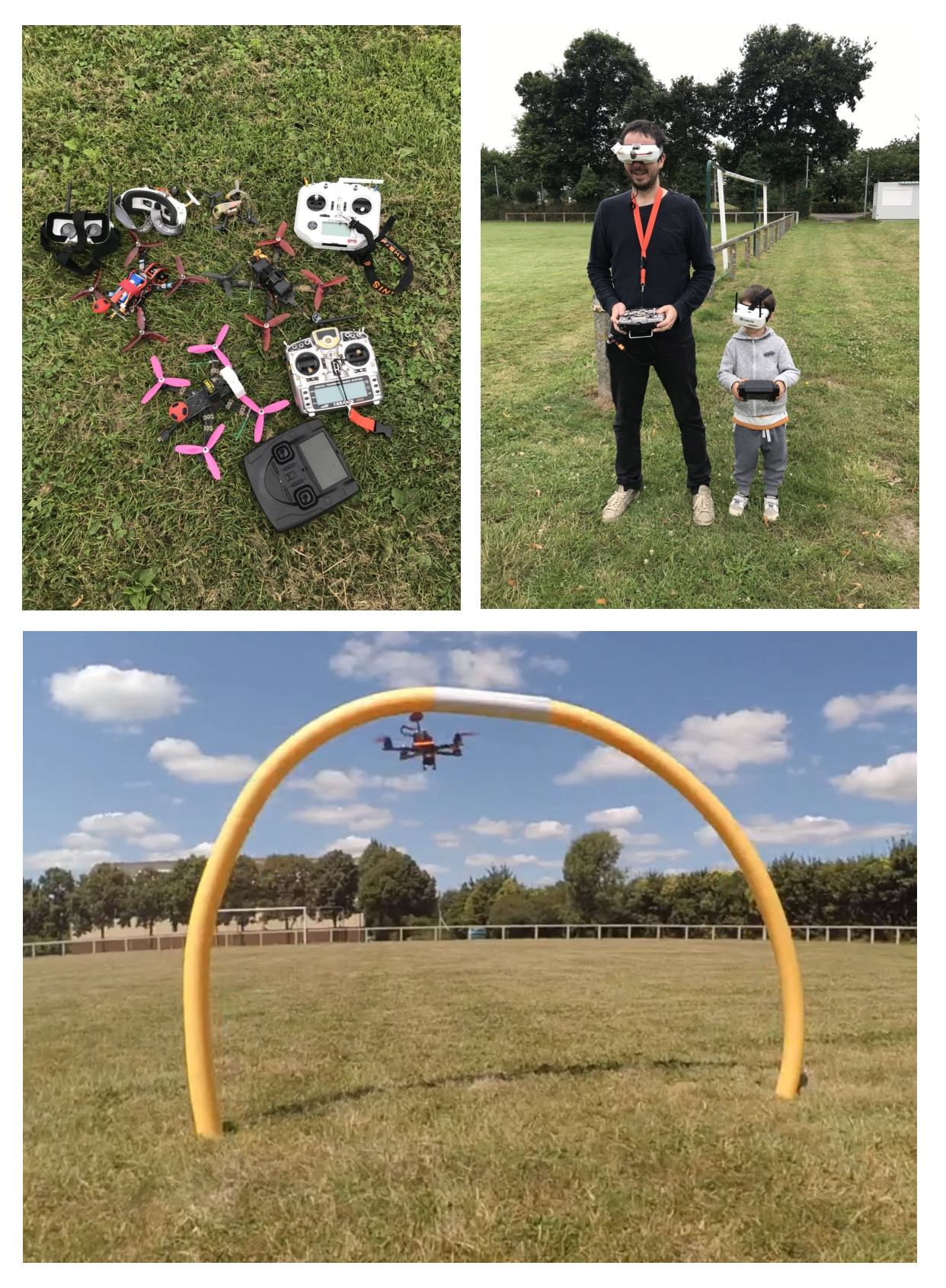 • de 11H à 13H environ à la salle de sport ou autour du terrain de foot pour les volants (drones / hélicoptères / avions)