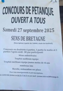 Voir les détails »Concours de pétanque le 27 septembre 2025 en doublette formée. Engagement à 10h - une partie le matin et trois l'après-midi. Buvette et restauration sur place